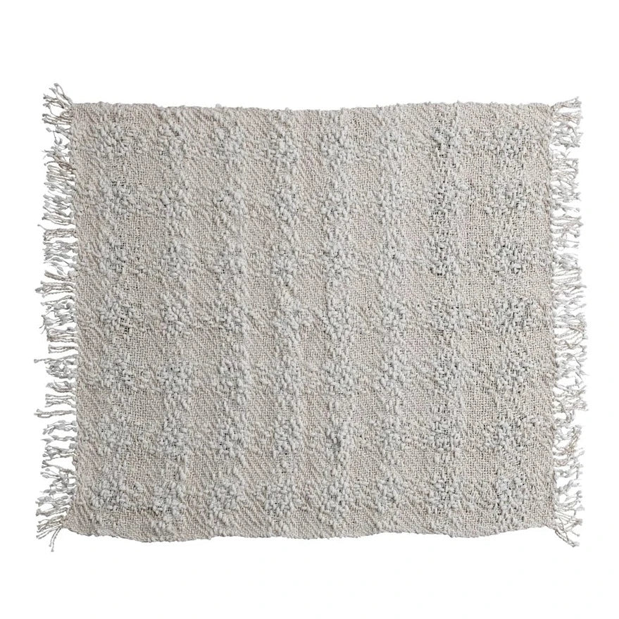 60"L x 50"W Woven Cotton Blend Cable Knit Throw w/ Fringe, Natural