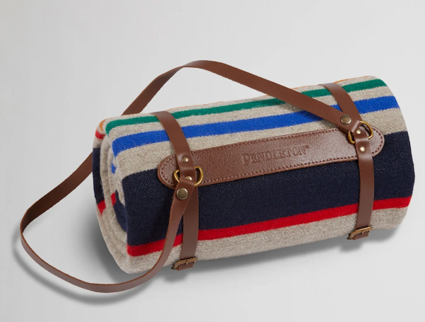 A wool throw featuring our Yellowstone pattern, designed to capture the varied colors and landscapes of our country's oldest national park. Perfectly sized for the back of a couch or foot of bed, it's also a welcome companion for road trips, picnics and outdoor concerts. Includes leather carrier for easy portability.